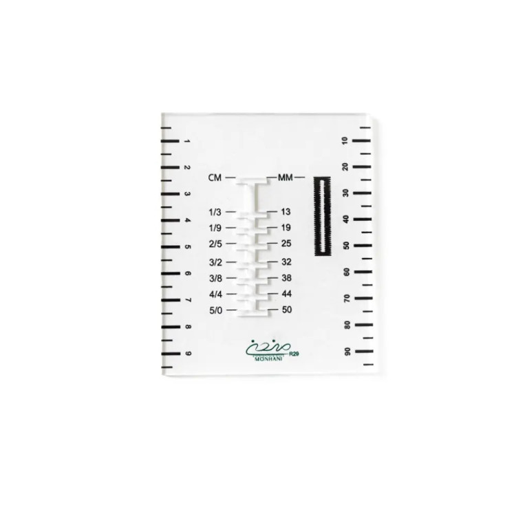 شیار داخلی خطکش مناسب مشخص کردن قطر دکمه و علامت گذاری جای دکمه روی لباس( برای دکمه ها از قطر ۱۳ تا ۵۰ میلیمتر)