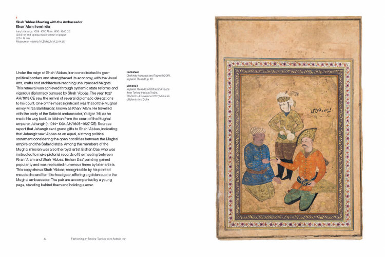 With their sumptuous surfaces, original designs and technical sophistication, luxury textiles played a critical role in the social, cultural, religious and economic life of Safavid Iran (1501–1722). Used for clothing, furnishing and even architecture, fabrics also functioned as important symbols of power and as ubiquitous forms of artistic expression. In the 17th century, they became the most lucrative economic commodity in Iran and were exported by land and sea to both Europe and the East, generating tremendous wealth and prosperity for the Safavid Empire. By employing the most talented designers and bringing the industry under state control, Shah ‘Abbas I built a flourishing silk economy that fueled an era of rich artistic development and cultural exchange. Fashioning an Empire captures this moment in time, showcasing masterpieces from the period complemented by manuscript illustrations and portraits depicting how the silk fabrics were worn by the elite of Iranian society.