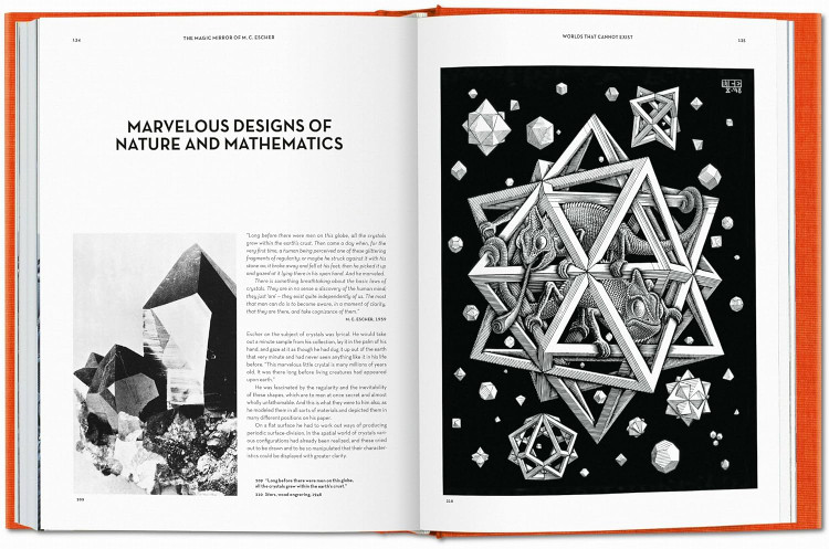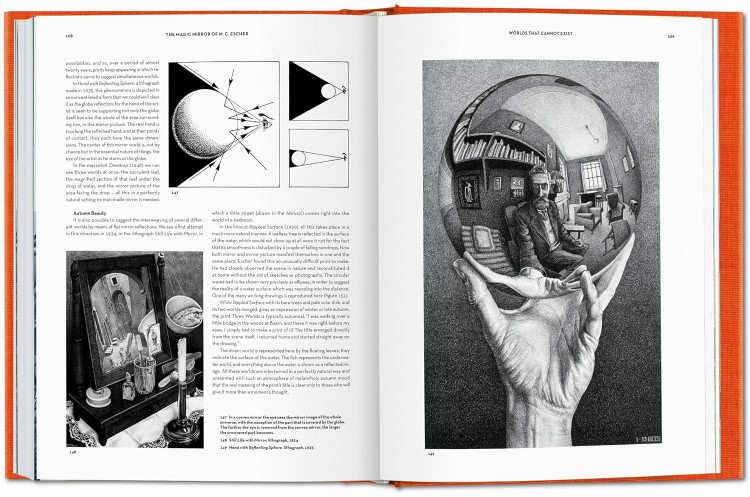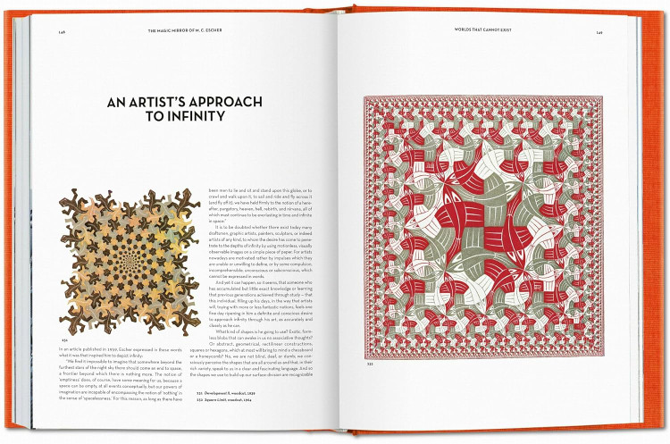 Long before the first computer-generated 3-D images, Escher was a master of the third dimension. His lithograph Magic Mirror dates as far back as 1946. By taking such a title for the book, mathematician Bruno Ernst stressed the enrapturing spell Escher’s work invariably casts on those who see it. Ernst visited Escher every week for a year, systematically talking through his entire oeuvre with him. Their discussions resulted in a friendship that gave Ernst intimate access to the life and conceptual world of Escher. Ernst’s account was meticulously scrutinized and made accurate by the artist himself.