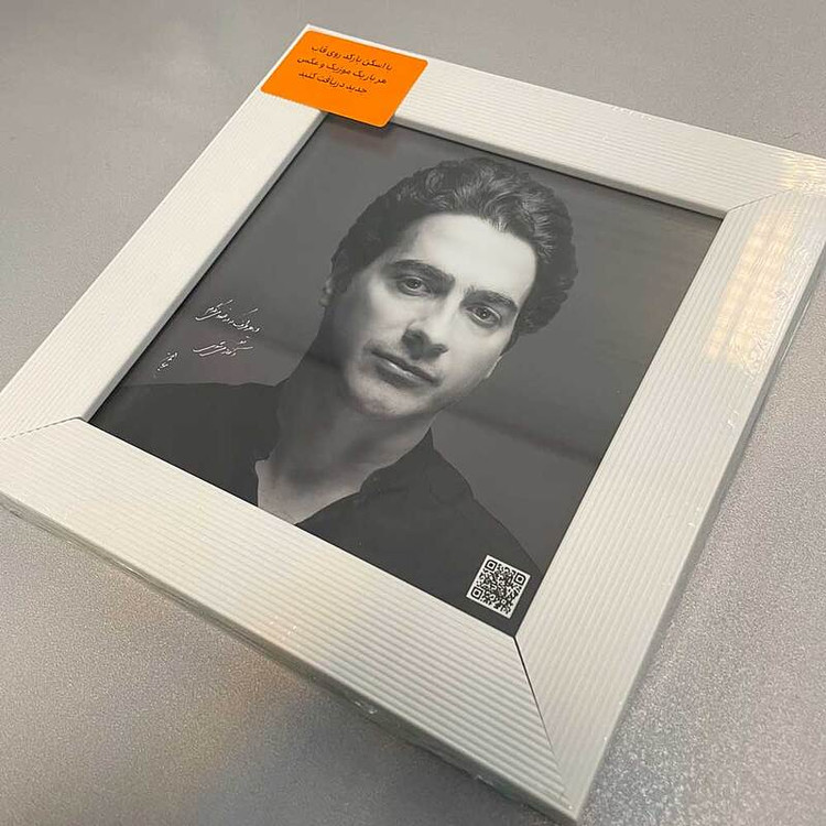 در این قاب زیبا و باکیفیت، تصویر همایون شجریان با بهترین کیفیت چاپ شده و کنار آن یک QR کد اختصاصی قرار گرفته است. با اسکن این کد، به مجموعهای از بهترین اجراها، قطعات و کنسرتهای همایون شجریان دسترسی خواهید داشت.